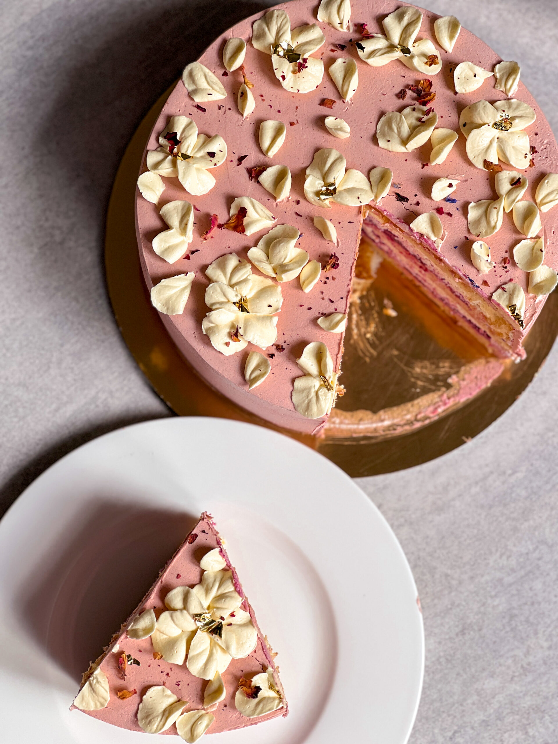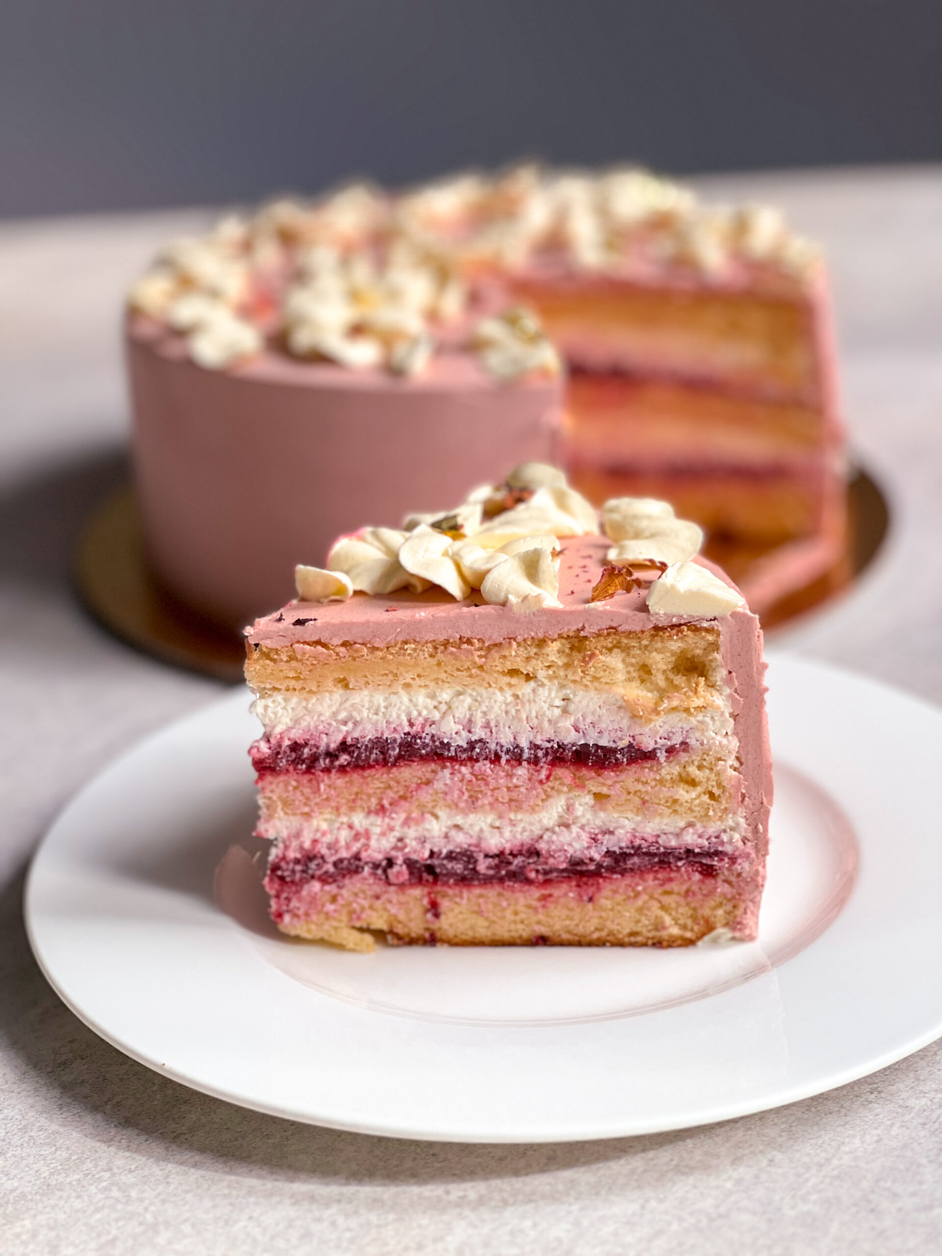 Extra puha vaníliás piskóták, vaníliás túrós-tejszínes krém, meggy betéttel minden réteg között.